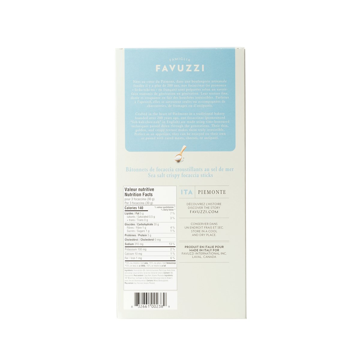 Crafted in an Italian artisanal bakery with over 200 years of expertise, Favuzzi focaccinas are made slowly using simple ingredients and recipes passed down through generations. Their thin, crisp and golden texture sets them apart instantly.