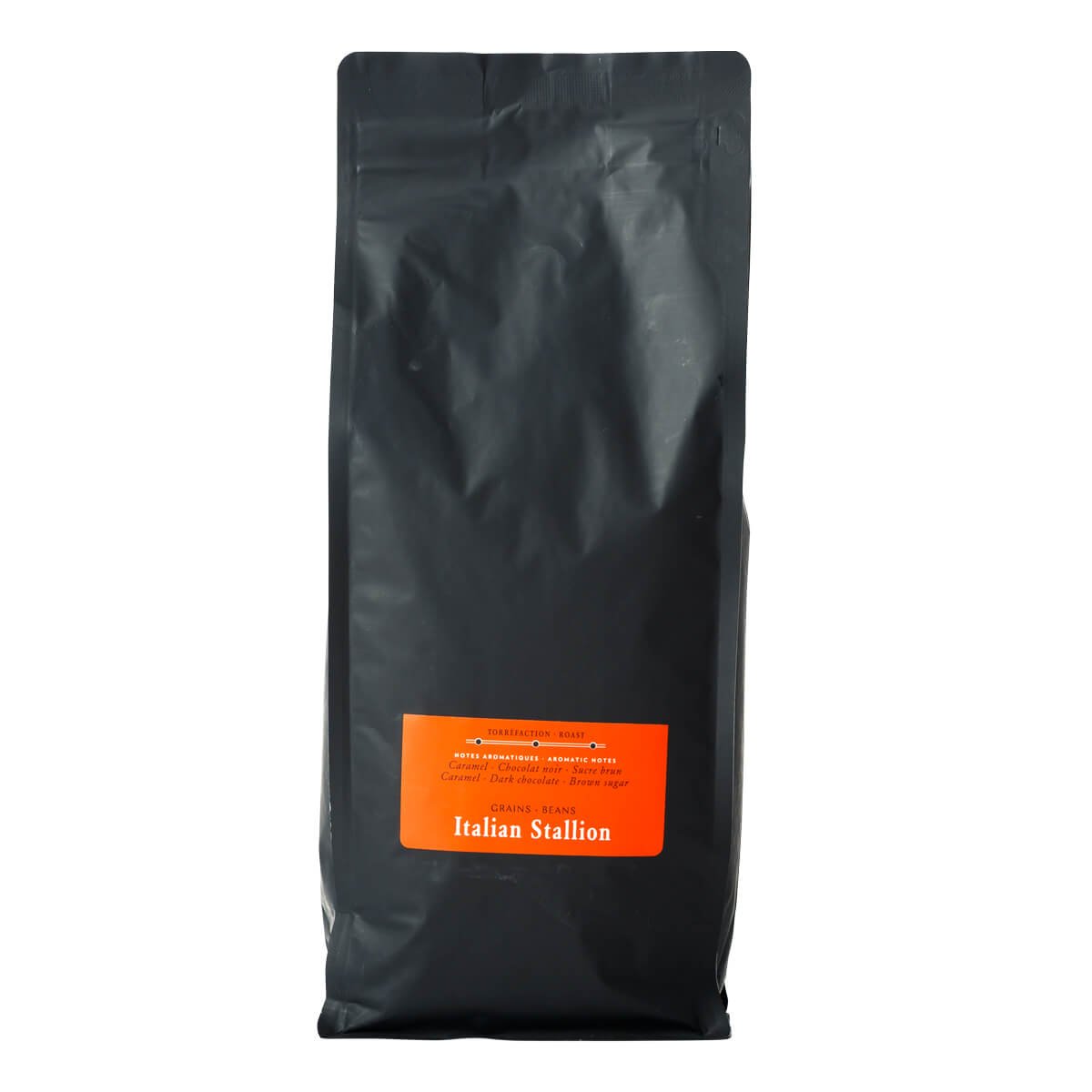 Favuzzi Italian Stallion coffee is a full-bodied coffee with aromatic notes of caramel, dark chocolate and brown sugar.