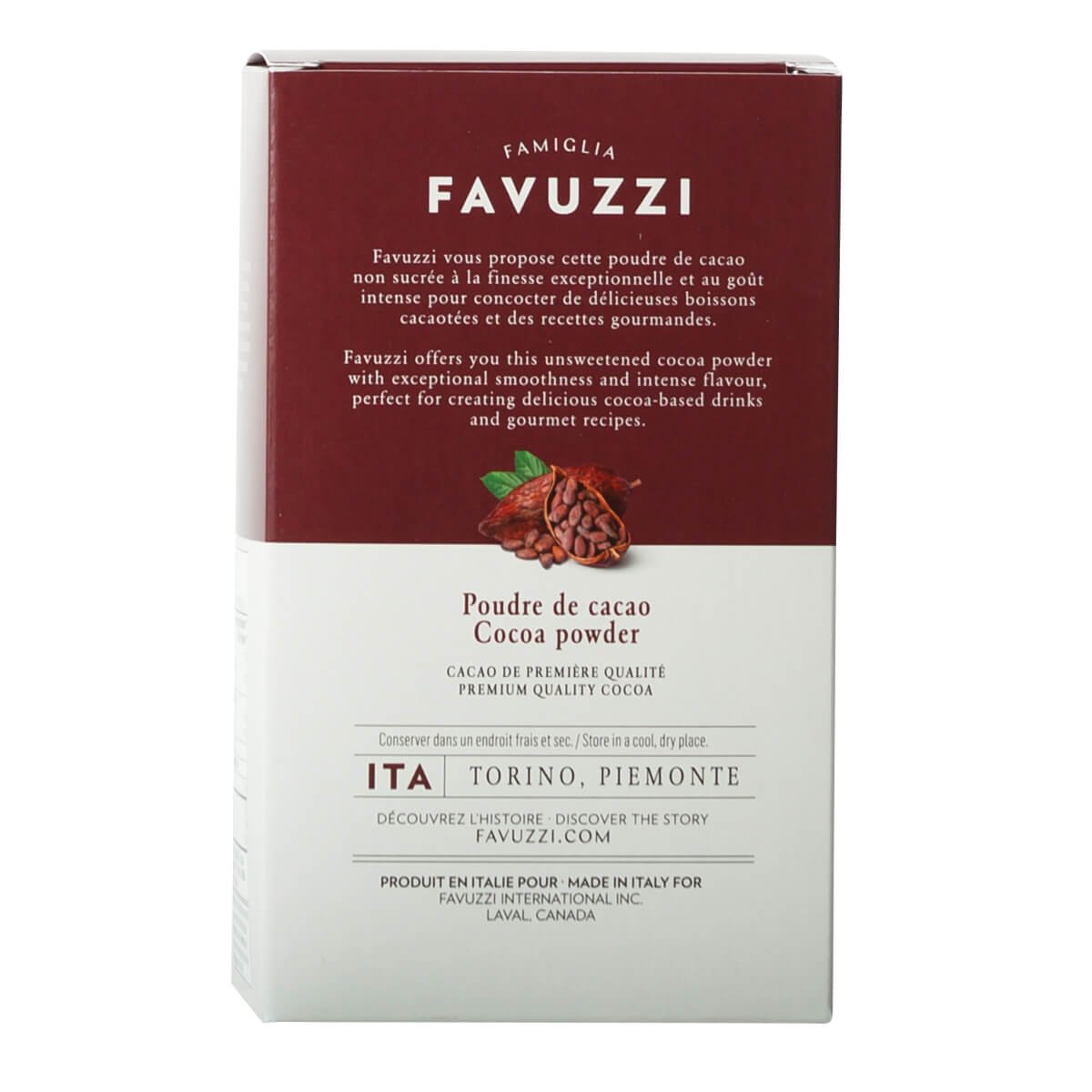 Fabriqué à partir des meilleures matières premières, obtenues avec soin auprès de fournisseurs de confiance, chaque lot de poudre de cacao Favuzzi's reflète l'essence de l'artisanat italien et de la passion pour le chocolat. Produit avec précision et expertise, ce mélange sans sucre offre une expérience de cacao pur et non altéré, parfaite pour ceux qui recherchent une gâterie indulgente mais soucieuse de leur santé.