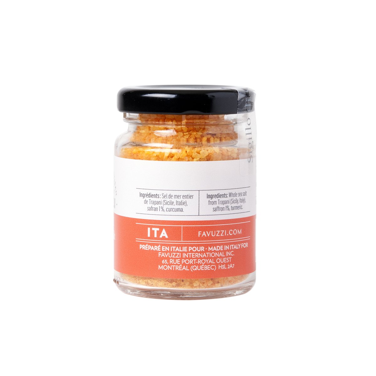 Sel de mer entier de Trapani (Sicile, Italie), Safran 1 %, Curcuma.