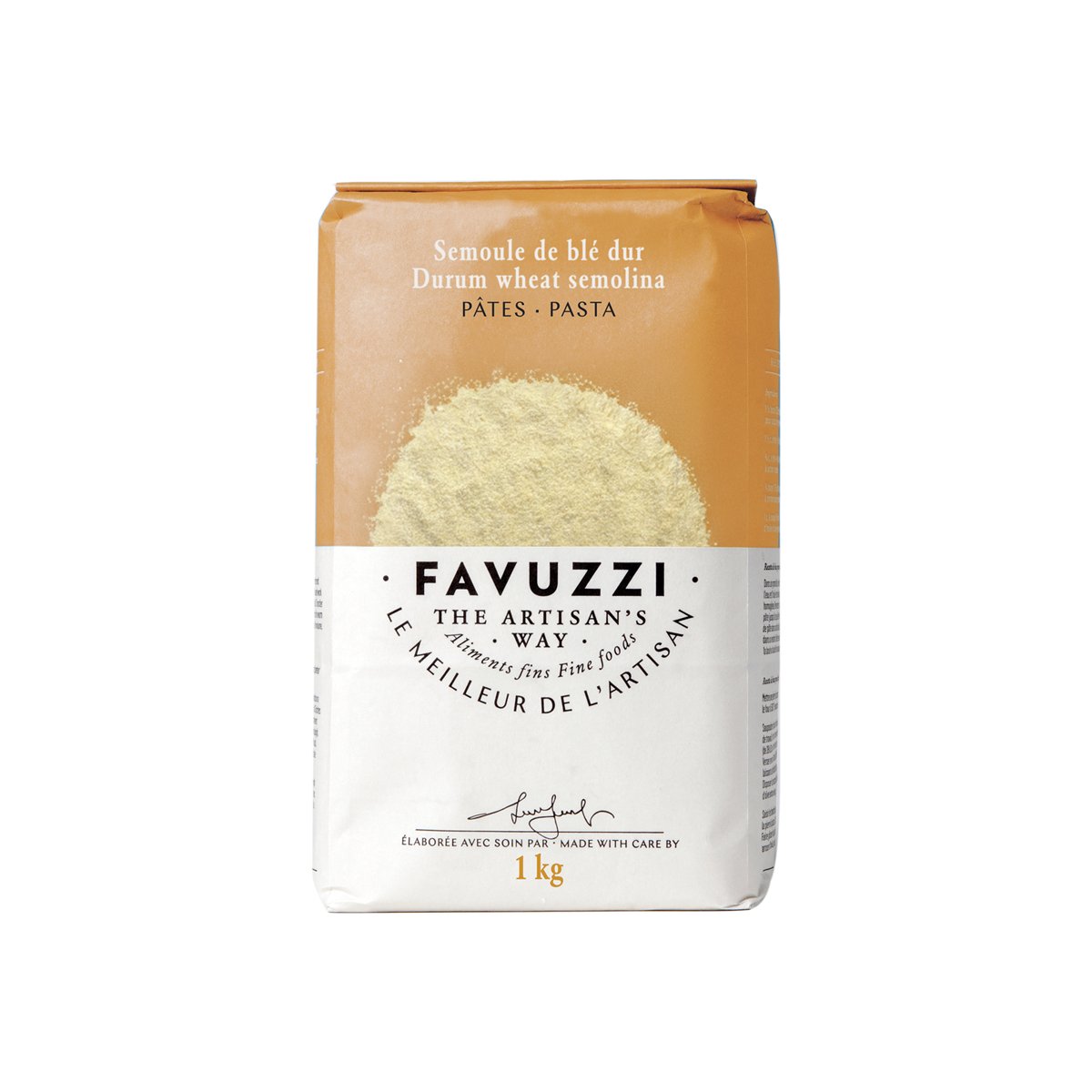 La Semoule de Blé Dur Favuzzi se distingue par sa belle couleur dorée et sa texture ferme. Moulue lentement à froid à partir de grains soigneusement sélectionnés, elle préserve toutes les qualités naturelles du blé. Riche en gluten, elle confère à la pâte une excellente élasticité, idéale pour préparer des pâtes fraîches à la texture parfaite. Une fois cuite, la pâte conserve sa forme et sa couleur éclatante, et reste al dente et révèle une saveur authentique, fidèle à la tradition italienne.