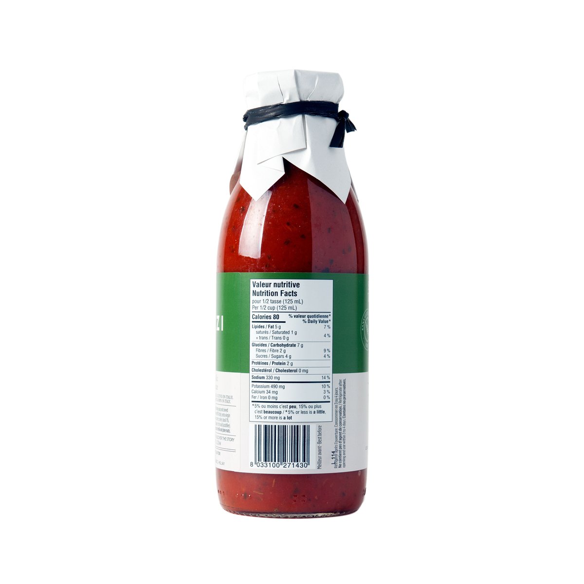 Réfrigérer après l'ouverture. Consommer en 3 ou 4 jours. Ne contient pas d'agent de conservation.